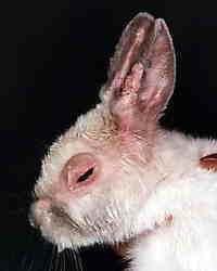 Nach der Ansteckung treten nach einem bis drei Tagen die Krankheits-erscheinungen auf: Blut läuft aus der Nase, die Kaninchen bekommen keine Luft mehr und ersticken.